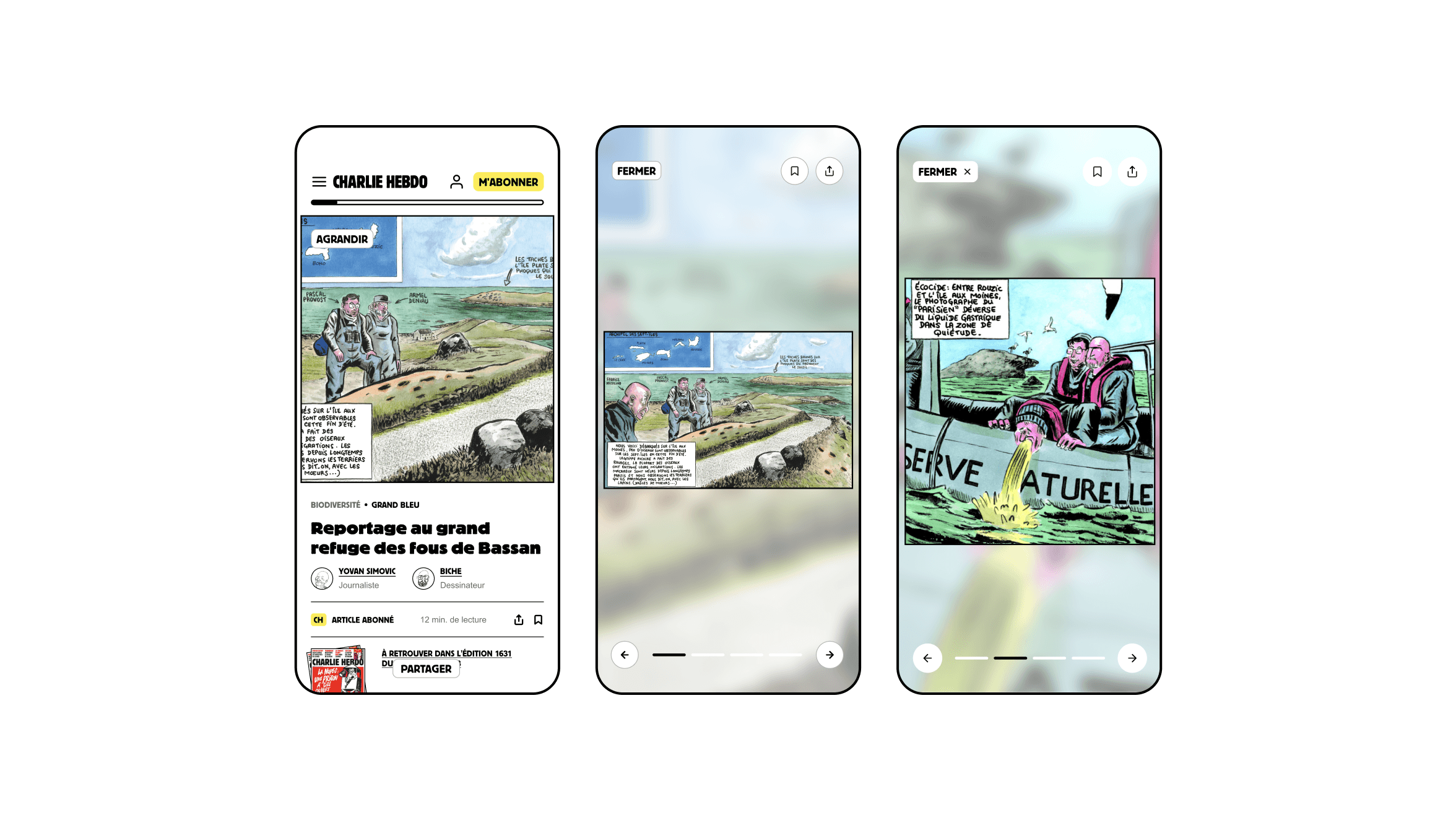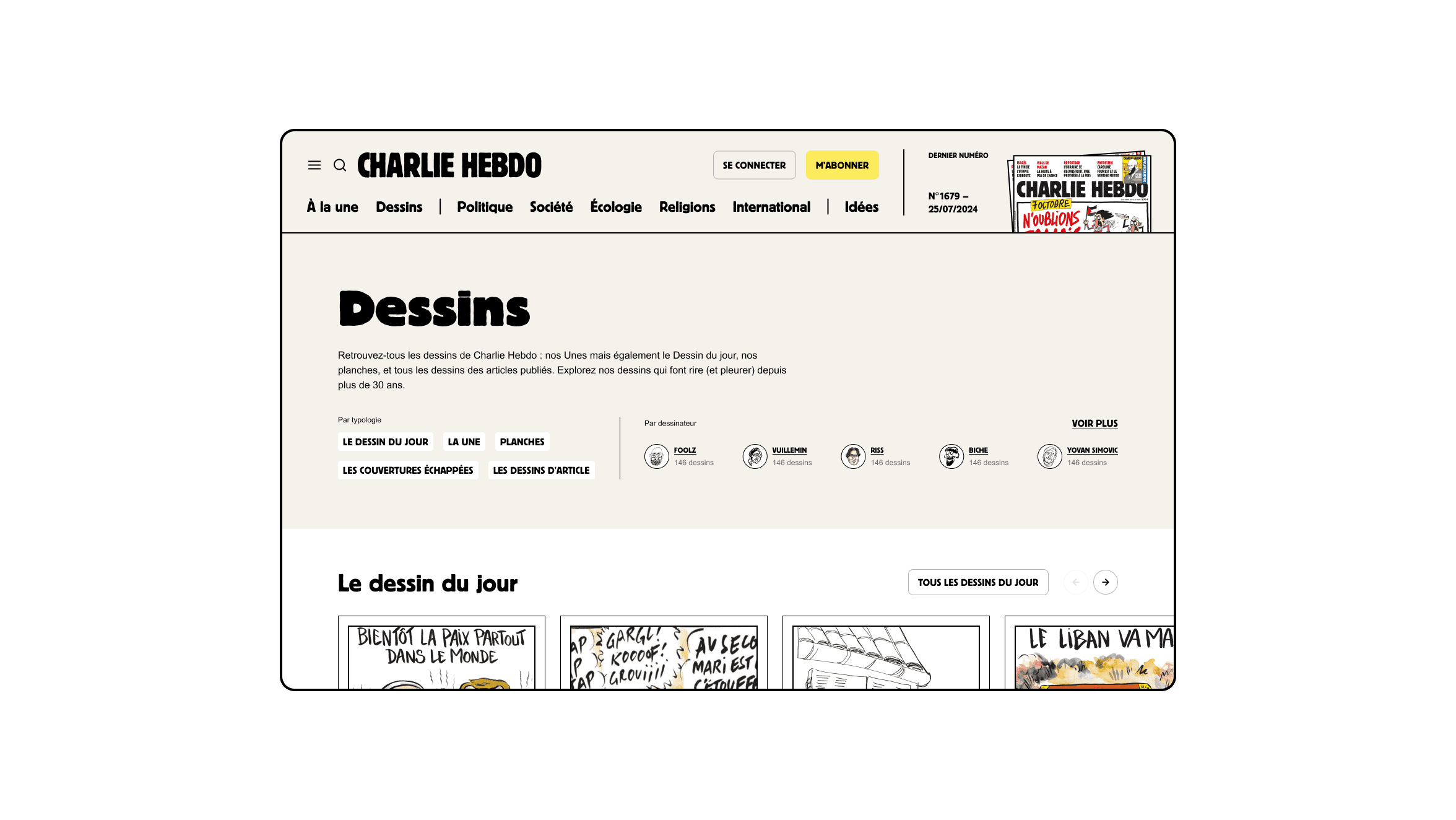 • Assurer la transposition de l'univers graphique du papier sur un support digital afin de consolider la patte du média dans l'ensemble de son écosystème • Valoriser la navigation et l'interaction avec le dessin, notamment sur mobile, car la moitié du journal est consacrée à l'expression graphique • Faire vivre le média avec le déploiement de nouveaux produits digitaux (longs formats entre autres)